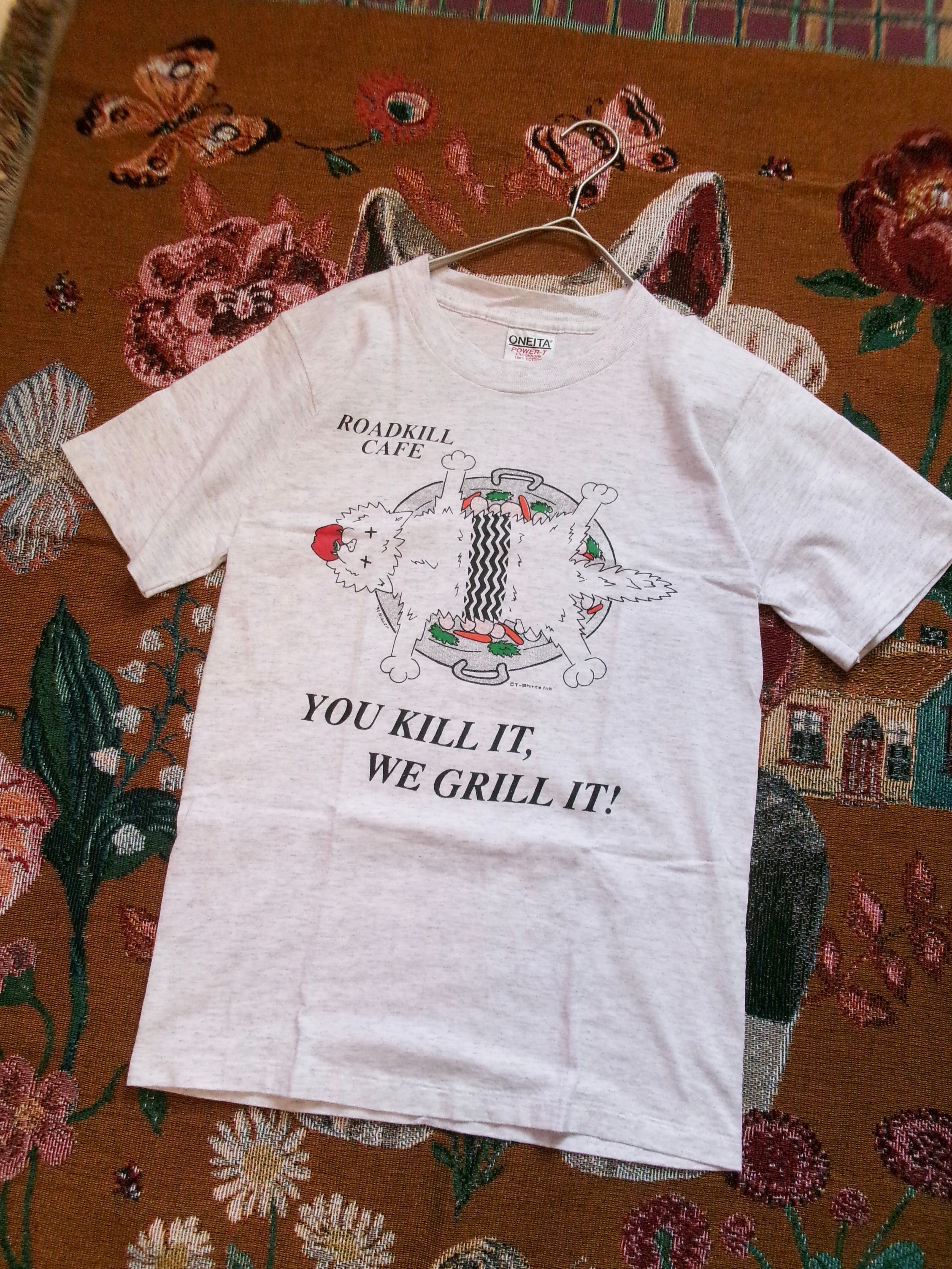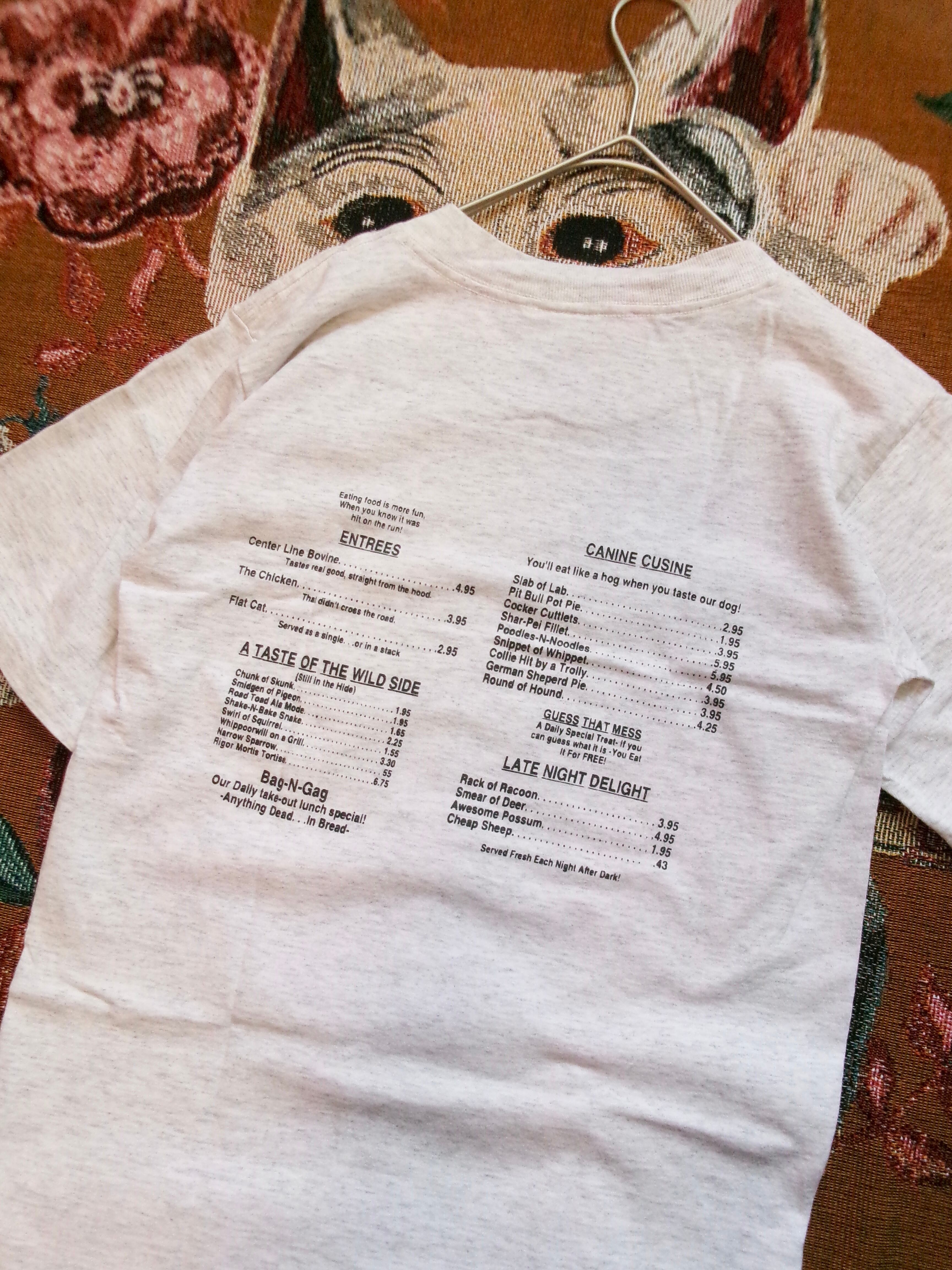 "道路にいる動物のカフェ"という皮肉たっぷりのTシャツになってます。